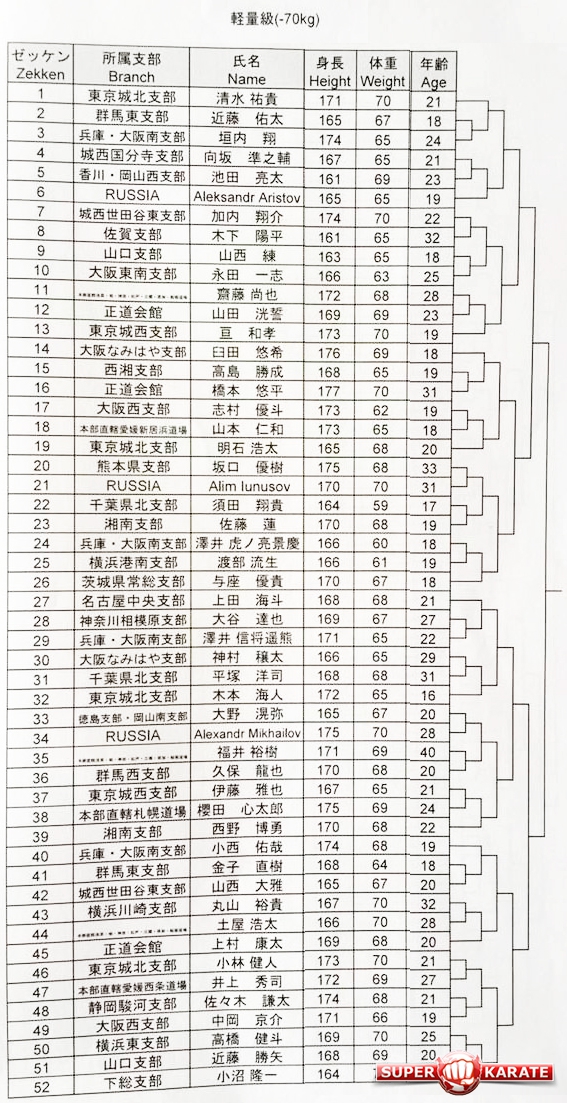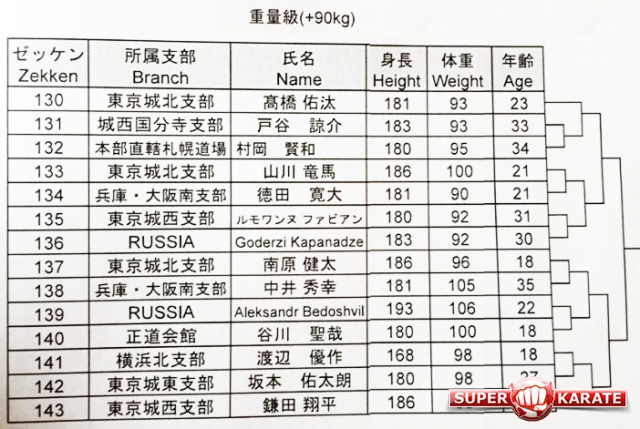 Пули 33-го весового Чемпионата Японии по киокушинкай (IKO)
