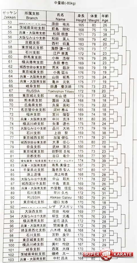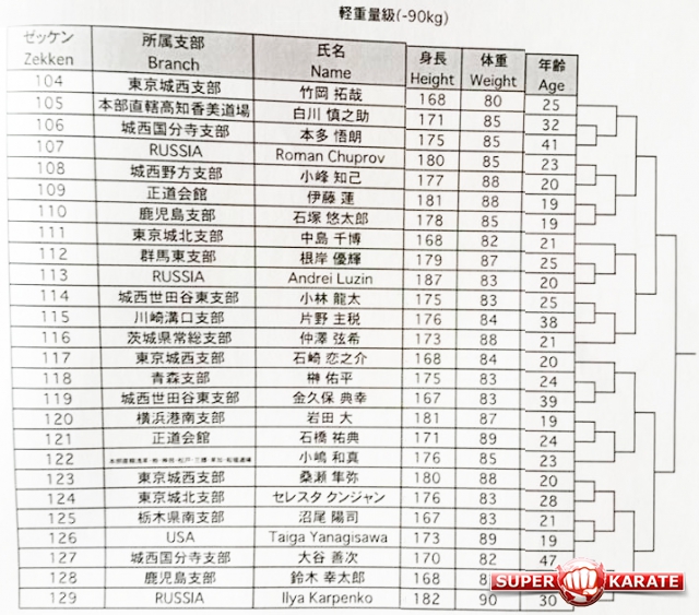 The 33rd All Japan Weight Category Karate Tournament Official Draw