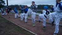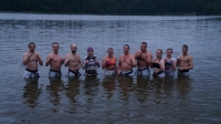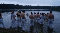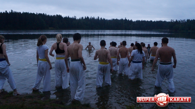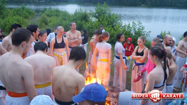 каким-то магическим действом... Ночь.... Кросс в лесу, корни, лужи... кихон на берегу озера и затем в озере... Костер...