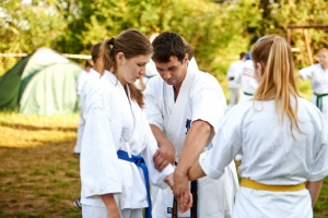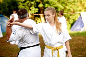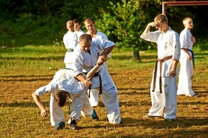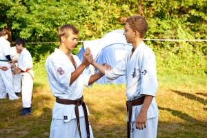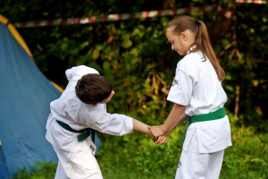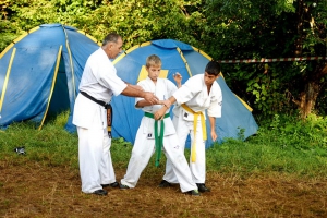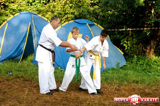 С 15 по 25 августа в горной местности Лабинского района на базе «Горный воздух» собралось около 70 юношей и девушек в возрасте от 11 до 25 лет. Несмотря на свой юный возраст многие из них уже носят титулы призеров и победителей Первенств России и Европы. Но здесь, на сборах, для опытной команды тренеров все равны. Опытные сэнсеи во главе с президентов Федерации Шиханом Тагиром Таировым проводили для своих подопечных ежедневные тренировки, включавшие общую физическую подготовку, изучение техники боя, спарринги и самооборону, не давая ребятам расслабляться.
