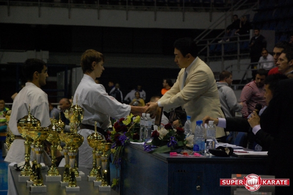 Пару слов о новом судействе в ката - шаг оценок был в 0.1 балла, разрыв между призерами соответственно тоже был в 0.1. Тем ценнее победа - Вячеслав Игонин (Москва) смог стать чемпионом Европы, обойдя Эмиля Слабона из Польши (финалиста Чемпионата Мира по ката 2008).
