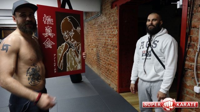 Алехандро Наварро приехал с подарком. Своему другу и Mad Max Dojo Алехандро подарил стилизованный портрет сосая Масутацу Ояма.