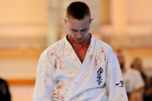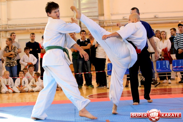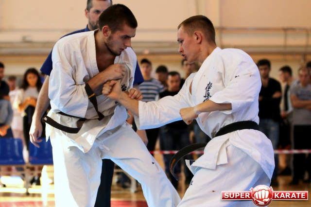 Перед началом соревнований в дисциплине «кумитэ» инструкторы «God Hand», Евгений Алейников и Артем Оганесян, продемонстрировали разрешенную и запрещенную технику, и показательный бой. При этом артистизм Евгения в роли «плохиша» не оставил публику равнодушной. Комментировать эту поистине театральную сцену ребята не стали, лишь отшутились.