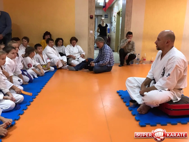 Завершив вечернюю тренировку сэнсэй Ильмов совместно с бранч-чифом Ростовской области, сэнсэем Олегом Захаровым посетили детский киокушиновский клуб «Азовские котята», где провели открытую тренировку, а также встречу с родителями юных каратистов. Евгений Александрович представил свою концепцию воспитания и развития подрастающего поколения через каратэ. Руководитель клуба Александр Шумлянский со своими воспитанниками выступили с показательными выступлениями и творческими номерами. Завершился вечер чаепитием с юными спортсменами и их родителями.
