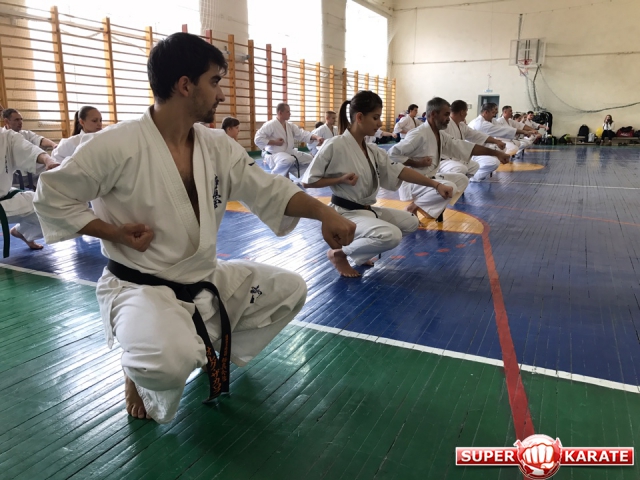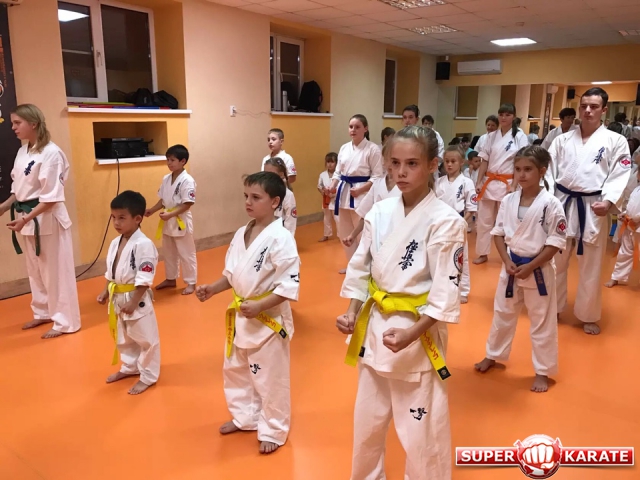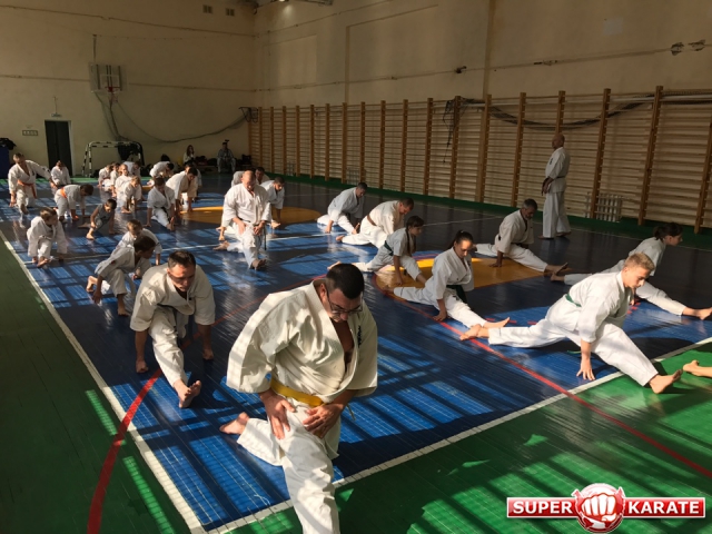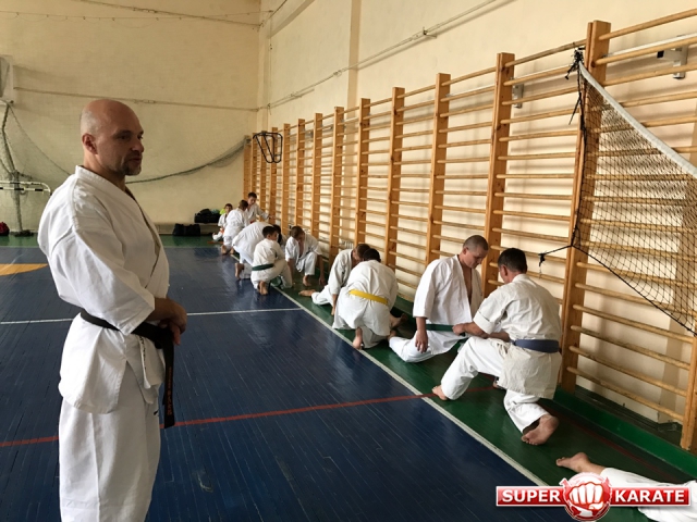 Второй день сборов начался с тренинга по созданию необходимой киокушиновской атмосферы в зале. Задача утренней тренировки была в объединении усилий всех спортсменов в одно пространство. Это достигалось многократным повторением техники с киай, и осознанием каждым участником тренировки необходимости совместно переносить всю тяжесть нагрузок.