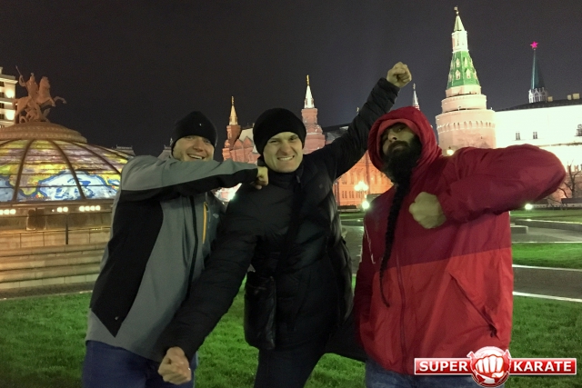 Вечером угостили гостя настоящим шашлыком и вместе с «зубрами» Киокушина - Алехандро Наварро, Ксенией Засориной и Дилшодой Умаровой, показали ночную Москву и приютили в нашем доджо.