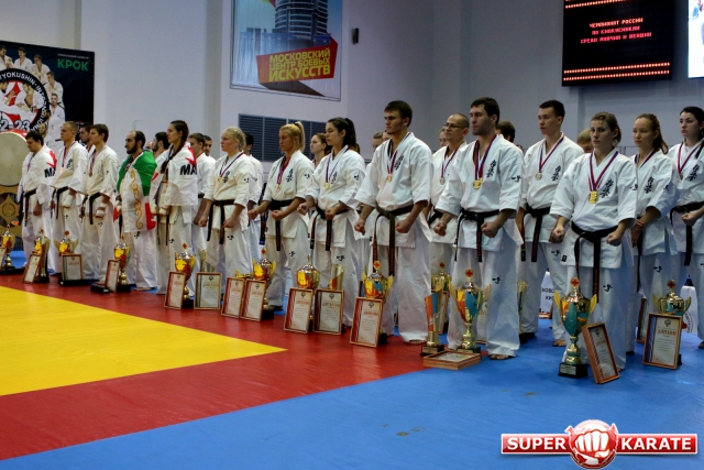 Новости / Киокушин (IKO) 3.11.2016 4 461 +3 Фоторепортаж с второго дня Чемпионата России по киокушинкай (часть 2) Теги: Чемпионат России, киокушинкай, киокусинкай, каратэ Финальная часть фотоотчета Анны Ипатовой с Чемпионата России 2016 по киокушинкай, который проходил в Москве 22-23 октября 2016 года.Фотографии с боев за медали и с награждения спортсменов. Автор: Андрей Куртий +3