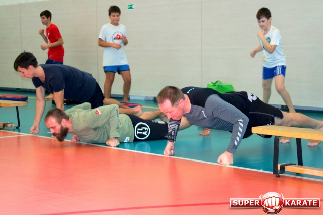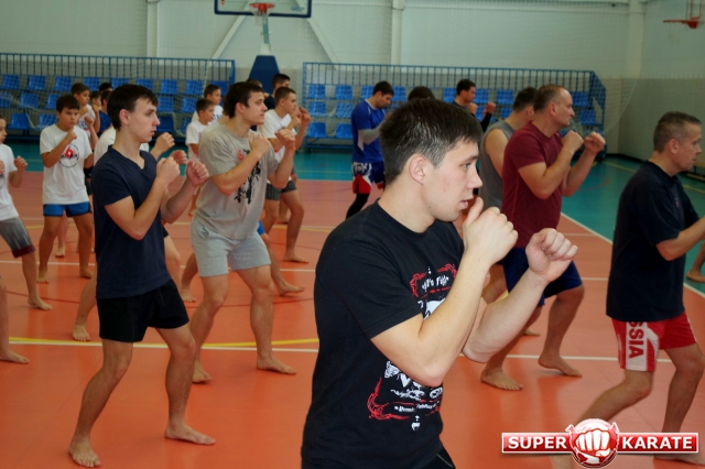 Помимо зарядки каждый день проходили две тренировки по два часа. Весь тренировочный цикл был направлен на обучение, повторение, закрепление и осознание боевой (практической) техники киокусинкай. В моменты отдыха между упражнениями сэнсей Максим Викторович давал объемные и понятные объяснения тех или иных действий, обращал внимание на ошибки учеников и помогал их исправить. Кроме того, сэнсей лично "выпахивал" на каждом занятии на ряду со всеми!