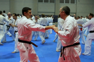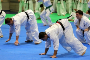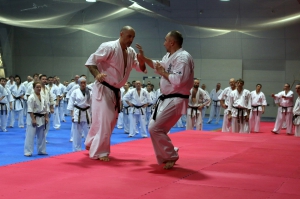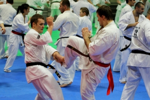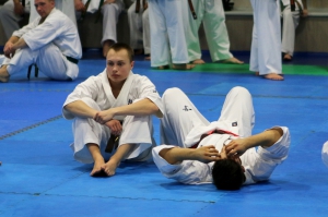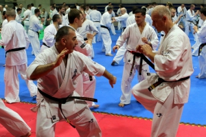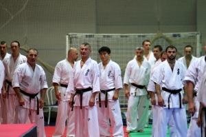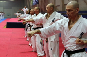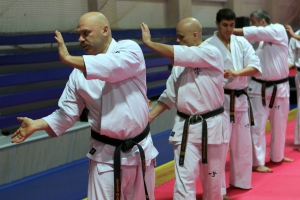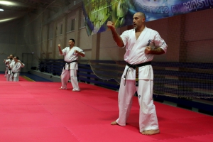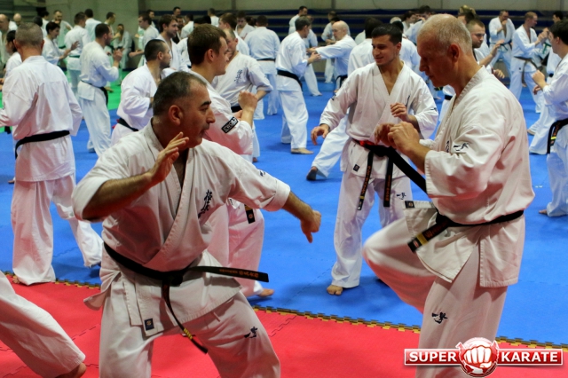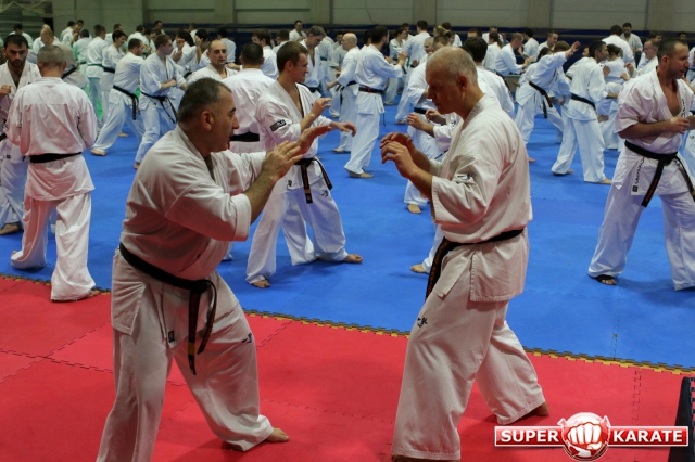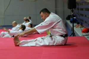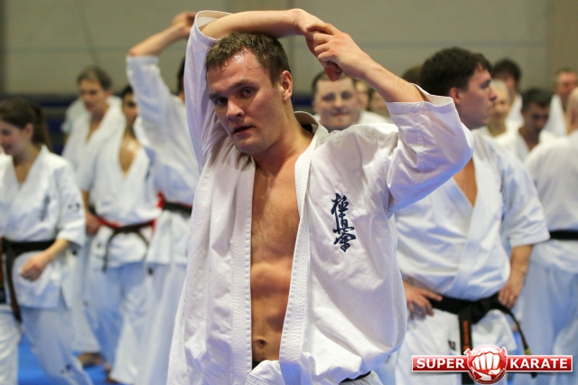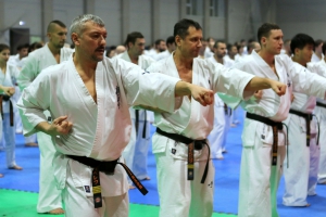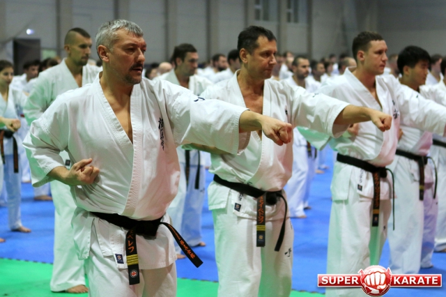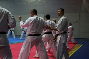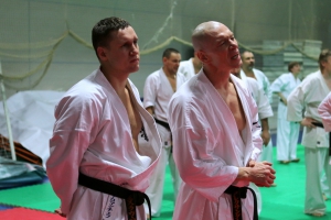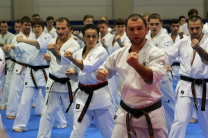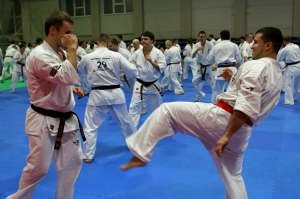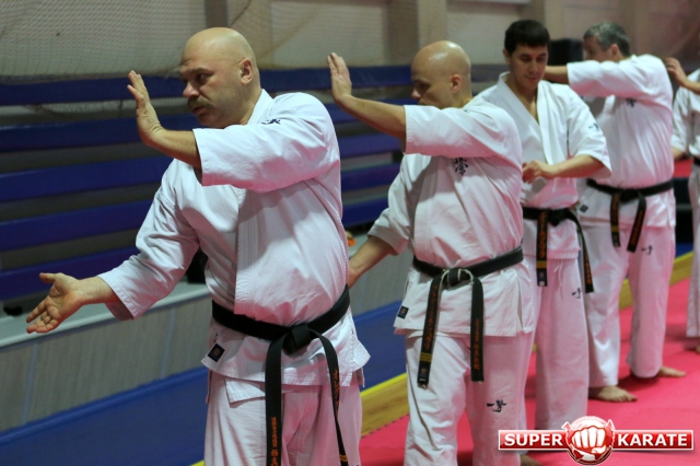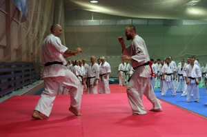 В первый день сборов РНФКК на спортивной базе «Чехов» прошло три тренировки: первая - самая ранняя (07:00) - под руководством сэнсея Макса Дедика и еще две тренировки проводил представитель IKO Хонбу шихан Артур Ованнисян.