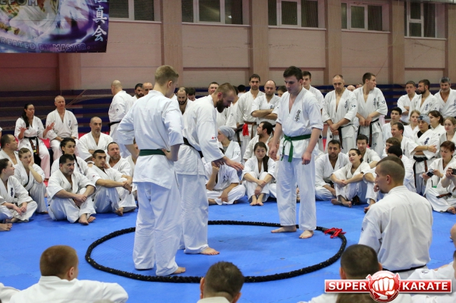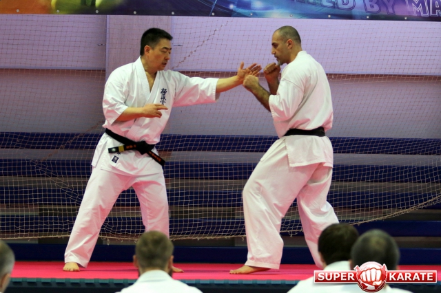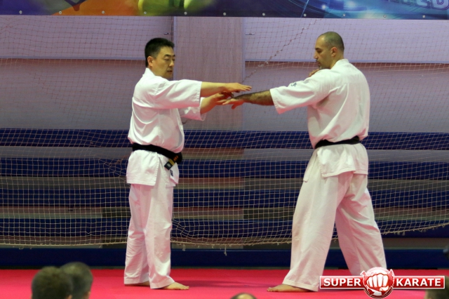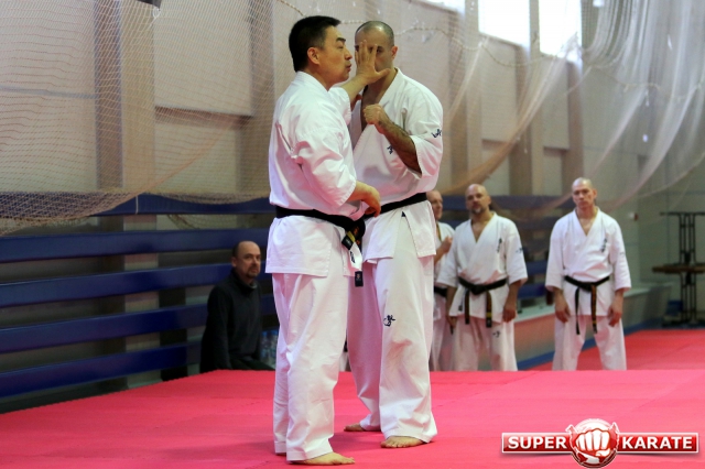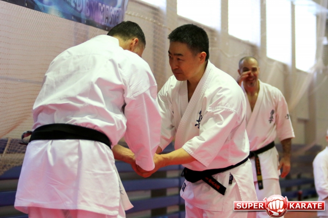 В 10:00 стартовал мастер-класс Канчо Мацуи, на котором он в очередной раз, очень доступно и четко дал высшую школу каратэ.