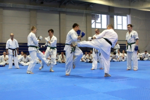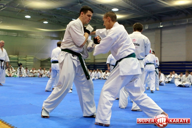 Кихон и физические кондиции, конечно же, важны при экзамене на пояса, но самыми главными разделами являлись и являются знание и умение в ката и кимитэ. Если не знаешь базу школы и не умеешь драться, то все твои остальные усилия бессмыслены. Фотоотчет с самой важной части экзамена.