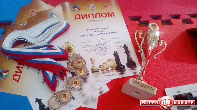 В пермской СДЮСШОР «Киокушинкай» прошел необычный спортивный турнир – «Мастера против учеников», причем это турнир по шахматам. Ребята-первоклассники, с белыми поясами сели за шахматные доски на татами вровень с именитыми сенсеями и опытными наставниками. И стоит заметить, что баталии разыгрались нешуточные!