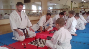 В спортивно-образовательном центр Киокушинкай с осени ввели шахматы как дополнительные занятия, набрали группу ребят из спортивных классов и по прошествии полугода юные бойцы уже рвались в бой. Наставником по шахматам стал ученик сенсея Юрия Артюшкова, человек, на протяжении многих лет практикующий киокушинкай в качестве любителя-спортсмена и впитавший в себя дух киокушина.