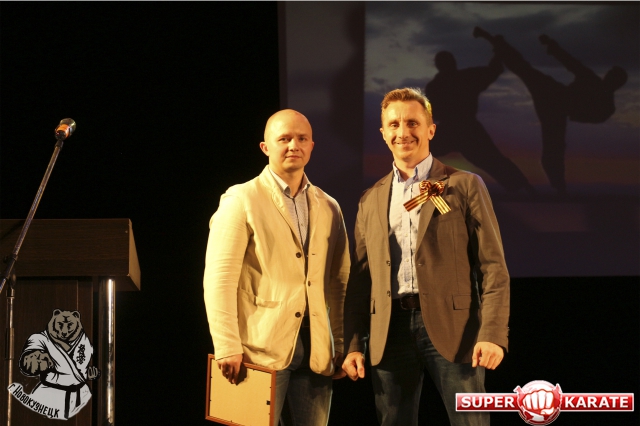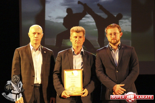 Президент областной организации киокушинкай вручил инструкторам новые черные пояса и сертификаты аккредитации.