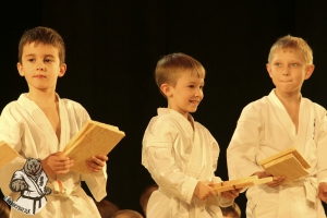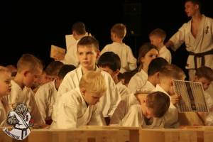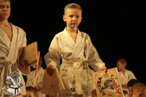 Юные каратисты прошли обряд посвящения, в котором нужно было сломать 1 доску. Все справились и получили памятные сувениры, а также смогли получить автограф и сфотографироваться с действующим рекордсменом мира по тамэшивари сэнсеем Ильей Карпенко, который в этом апреле успешно прошел экзамен на 4 дан.