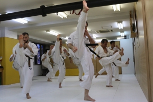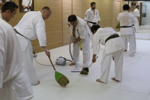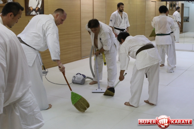 В конце тренировки, несмотря на ранги и звания, все дружно привели доджо в порядок.