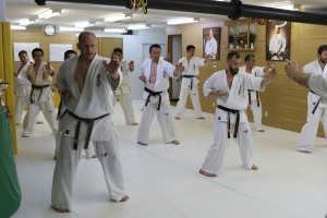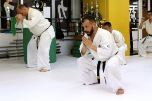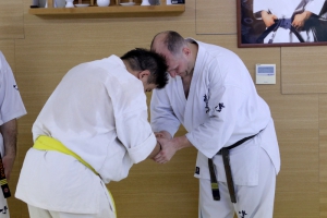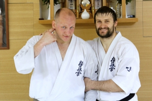 Традиционная тренировка завершилась импровизированной фотосессией, а шихан Артур Ованнисян передал в дар сэнсею Александру Еременко традиционную Камидану для Доджо.