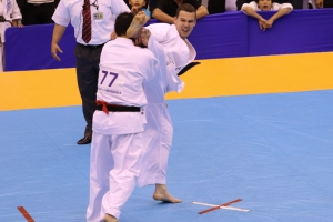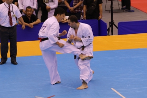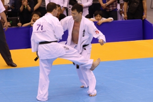 Уверенно разобравшись с первым соперником, жеребьевка вывела его на Кёхэя Аджиму - абсолютного Чемпиона Японии 2013 года. Аджима вернулся на татами после полуторагодичного перерыва, было видно что он проголодался по бою и не дал Роману пройти себя.