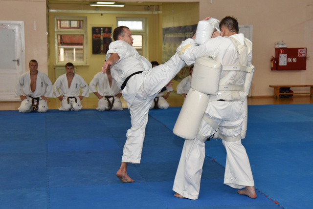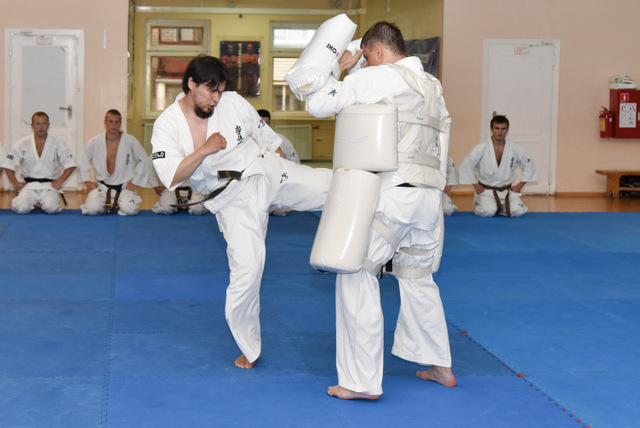 Также бойцы продемонстрировали гостям боевую технику киокушина.