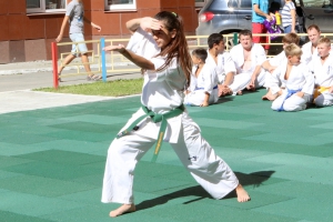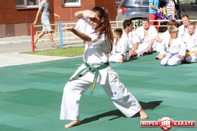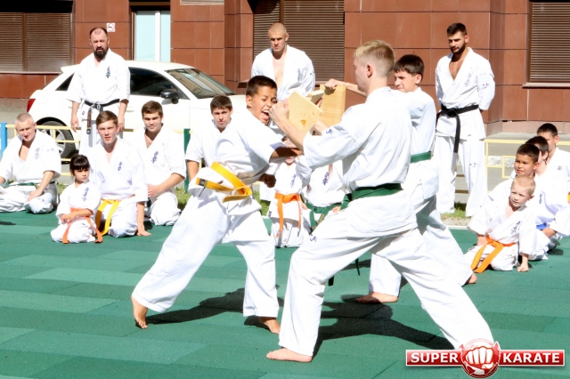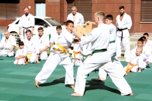 По окончании торжественной части и общей фотосессии, во дворе дома, где расположен зал, состоялись небольшие показательные выступления юных спортсменов клуба, что вызвало неподдельный интерес местных жителей и стало хорошей рекламой вначале сезона.