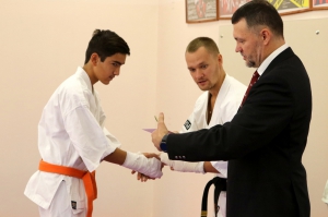 Воспользовавшись случаем, спортсменам федерации были вручены заслуженные сертификаты на новые кю и спортивные разряды. Также Александр Аркадьевич вручил инструкторам ФККСО новые черные пояса, экзамен на которые проходил на зимней школе. Евгений Алейников и Алексей Ершов получили первые даны, Александр Гуминских – второй, а Лаша Габараев – «сэнсейский» третий дан.