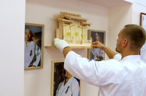 Приятным сюрпризом стала камидана, которую подарил клубу шихан Артур Ованнисян, а шихан Ипатов привез в Екатеринбург. По традиции такие камиданы есть во всех японских доджо, и хотя для нашего менталитета в ней нет подразумеваемой сакральности, она ставит важную точку в оформлении зала, указывая на принадлежность его к японскому стилю.