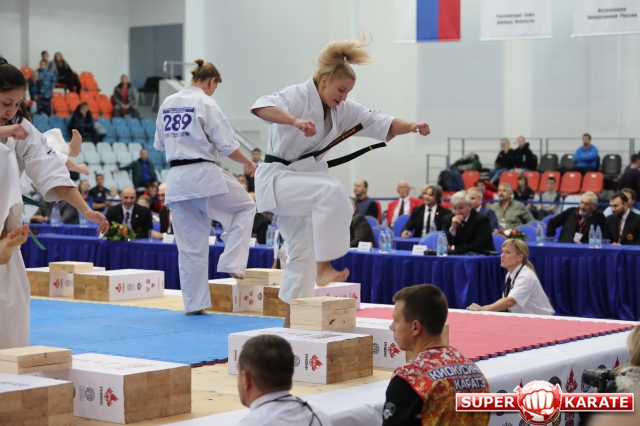 8 октября 2017 года в Москве стартовал второй день Чемпионата России по киокушинкай. Соревнования начались с тамэшивари, в двух позициях у женщин и четырех у мужчин. Доски оказались непростыми и было немало неудачных попыток.