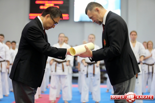 Вручал пояса глава международной организации IKO Канчо Шокей Мацуи.