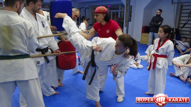 В связи с этим порекомендовала провести семинар под его руководством для инструкторов Санкт-Петербургской федерации киокусинкай, сэнсей Евгений Ильмов поддержал инициативу. Тему семинара выбрали достаточно обширную: «Растяжка и удары ногами» и состоял он из 2-х тренировок по 1,5 часа с перерывом на 30 минут. Мастер привёз с собой учеников, которые наглядно продемонстрировали великолепную растяжку и удары ногами. Очень понравился удар скорпиона и удержание чаши в вертикальном маэ гери маленькой Софии.