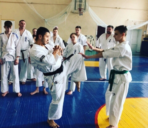 В минувшие выходные в Ростове-на-Дону прошли сборы по технике кумитэ под руководством Заслуженного тренера России Сэнсея Евгения Ильмова и действующего Чемпиона Европы Алима Юнусова. Сэнсей Юнусов рассказал о том "Как спровоцировать соперника и сработать на опережение", а сэнсей Ильмов в свою очередь об "Эффективной смене направления, уровня и ритма в атакующих комбинациях".
