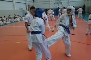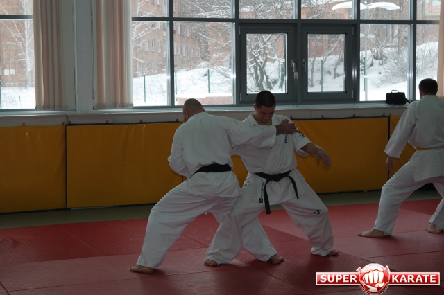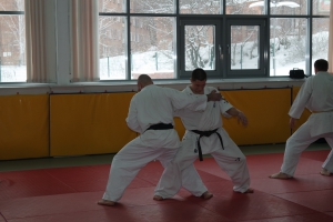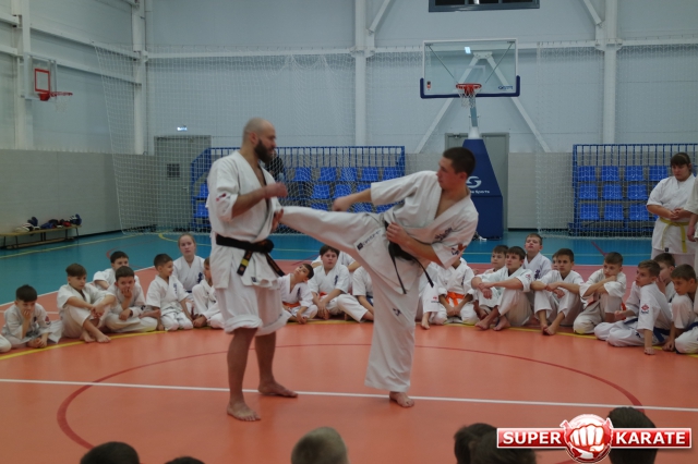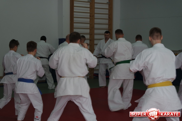 Сэнсей Максим Дедик провел два тренировочных занятия, посвященных вопросам использования техники кумитэ, адаптации её к новым правилам проведения соревнований.