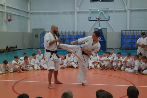 Одно занятие было открытым и в нем смогли принять участие все желающие спортсмены, второе предназначалось для тренерского состава и ведущих спортсменов. Во время тренировки сэнсей показал множество интересных упражнений разминки и упражнений подводящих к использованию техники подсечек и перехватов, которые активно используются при проведении соревновательных поединков.