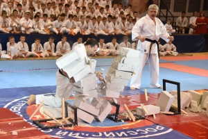 В этот вечер спортивная школа продемонстрировала успехи своих трех отделений. Перед зрителями одновременно выступили более 350 каратистов-киокушинкай, кульминацией их номера стало тамешивари в исполнении Алымова Григория (1 дан).