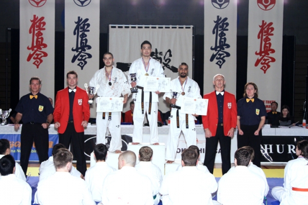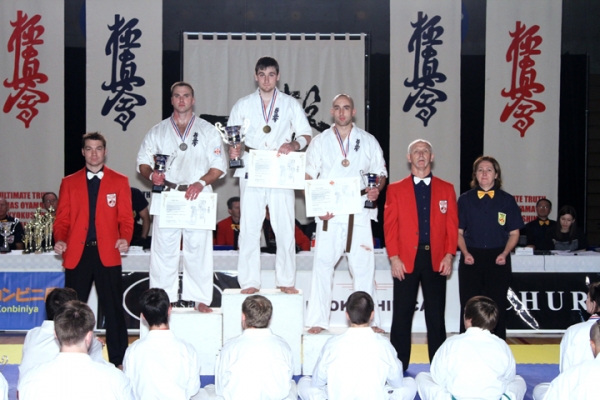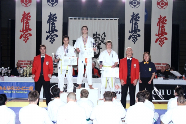 Результаты поединков среди тяжеловесов уже который год подряд - едва ли не сенсация. На этот раз первое место среди мужчин занял 17-ти летний Паша Михайлов из "Накамура доджо". В финальном бою его противником стал фаворит соревнований, спортсмен из Торонто, который весил на 15 кг больше. Впрочем, разница в весе не помешала Паше Михайлову отбить ногу своему сопернику, совсем как Хаджимэ Казуме лоу-киками «отсушил» ногу Глаубе Фейтозе на одном из чемпионатов Мира.