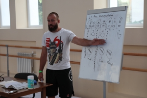 Еще один факультатив свободного посещения - лекции для тренерского состава, которые читают Евгений Ильмов и Максим Дедик, впереди "Круглый стол".