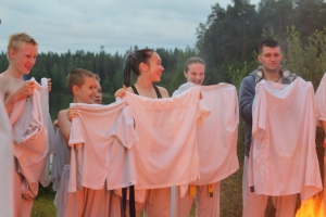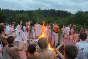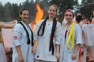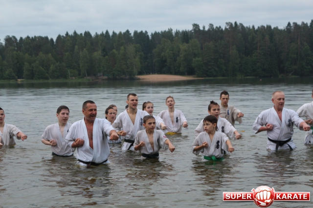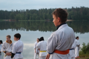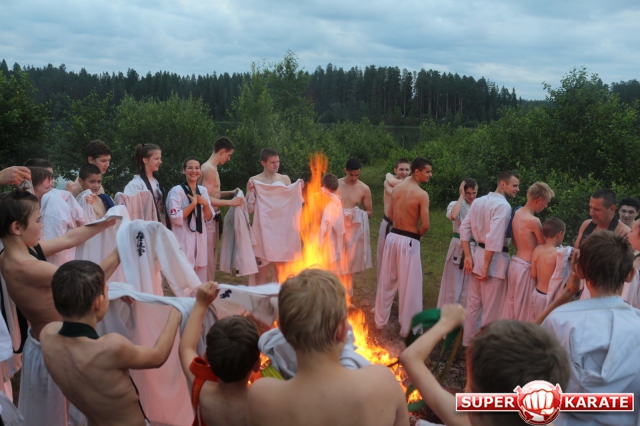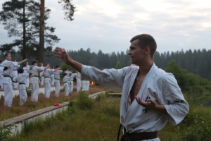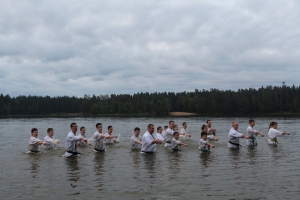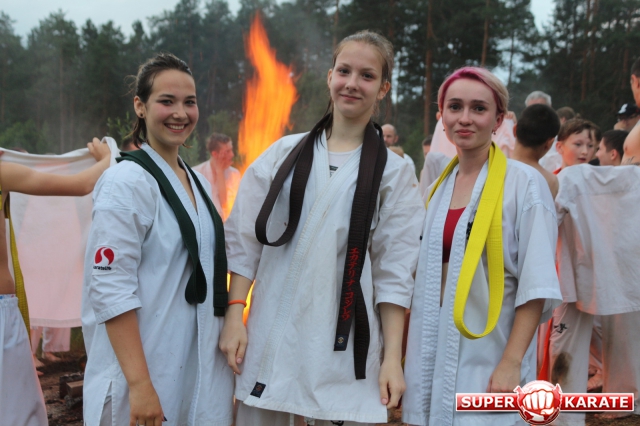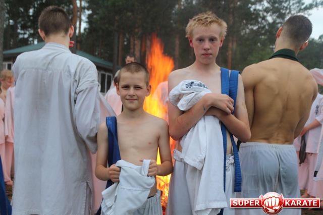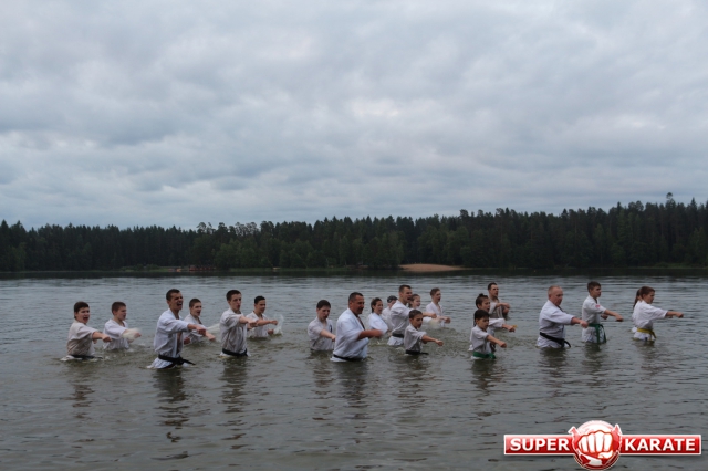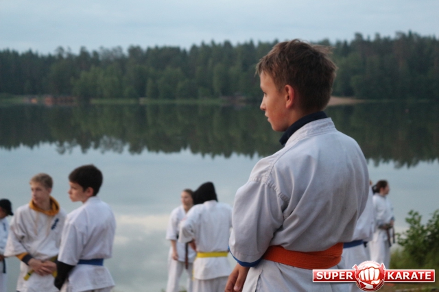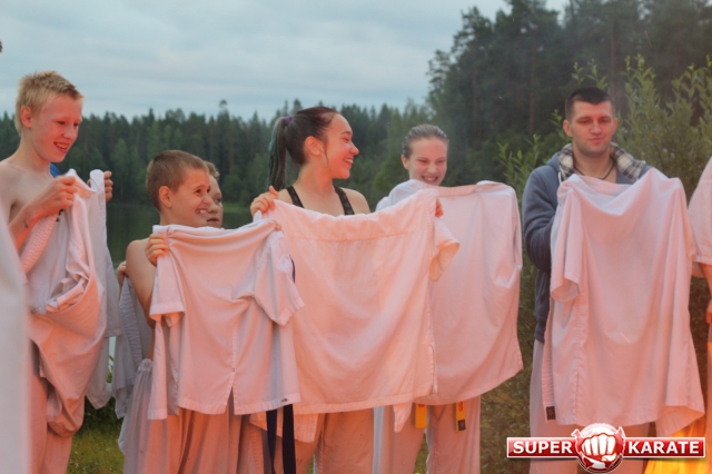 В ночь с 10 на 11 июля прошла ночная тренировка - в 3 часа ночи все участники во главе с Ульяной Гребенщиковой пробежали кросс, а после спортсмены старше желтого пояса зашли в озеро и продолжили тренировку ударами в воде.