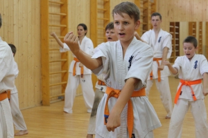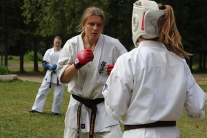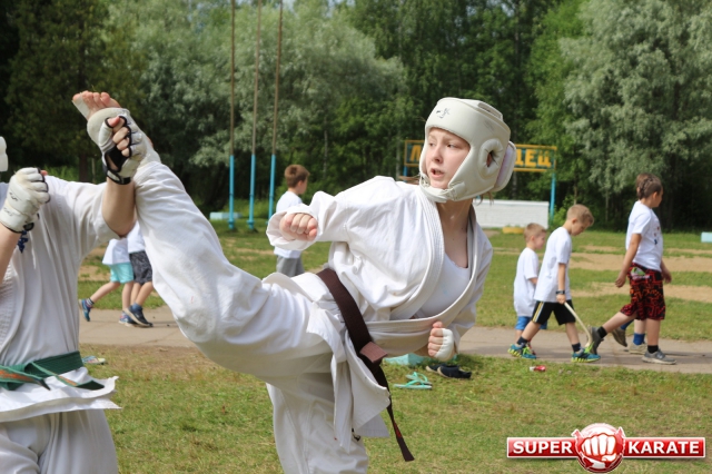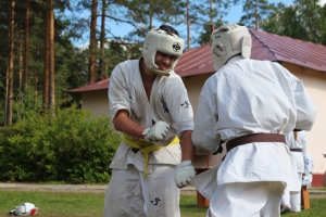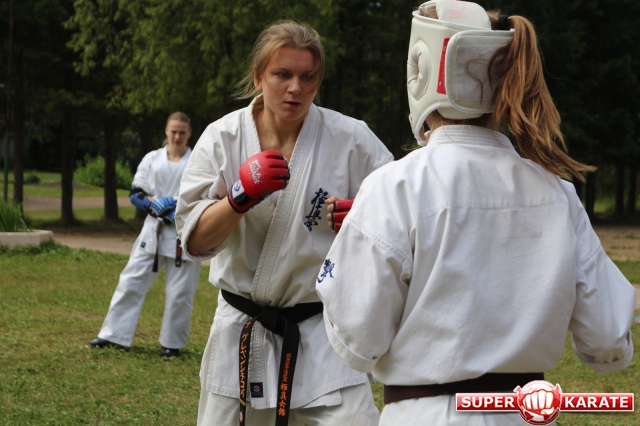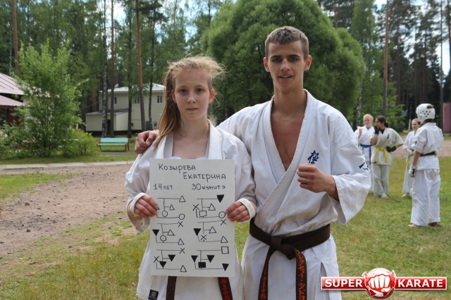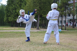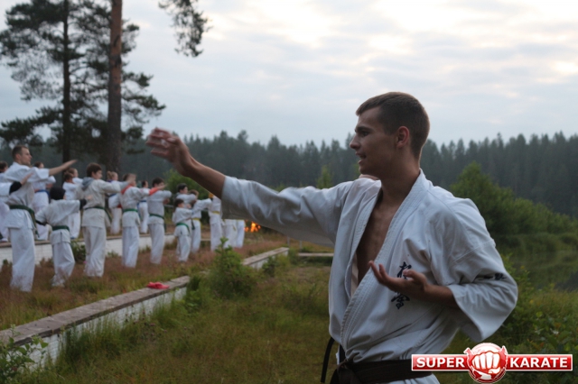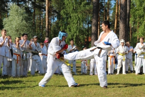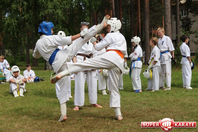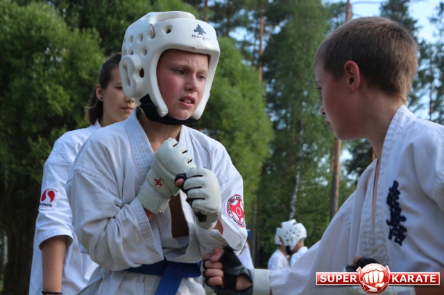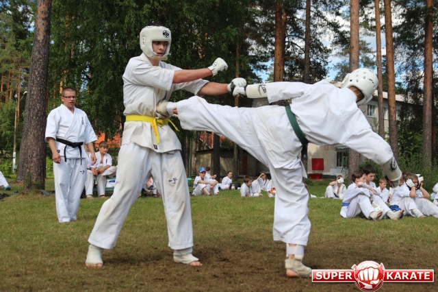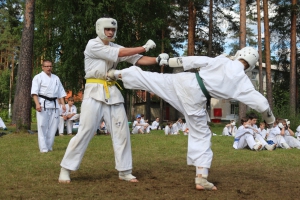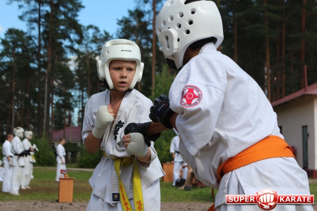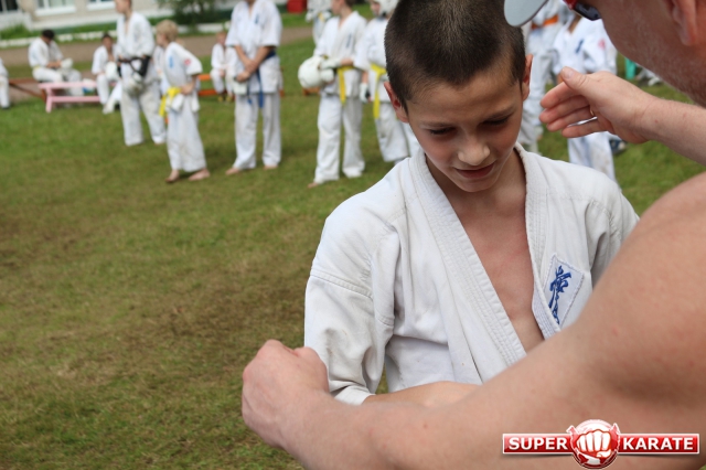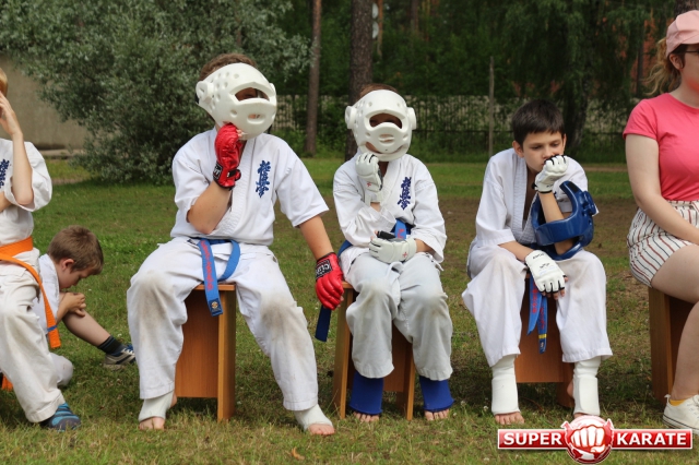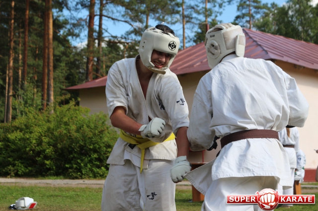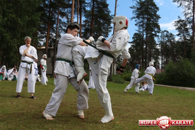 Первый экзаменационный день был отведен для проверки техники. Второй, 12 июля - для кумитэ. Боевая часть началась в зале, но вскоре по решению инструкторов сдающие перешли на улицу и продолжили поединки на поляне под палящим солнцем.