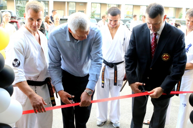 Шихан Ипатов сказал приветственное слово, дал напутствие на дальнейшую работу, и перерезал символическую красную ленточку, тем самым дав официальный старт работе и жизни нового доджо.