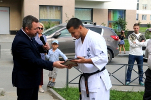 С приветственной речью выступил заместитель генерального директора управляющей компании «Академический» Евгений Аркадьевич Дынин. На празднике присутствовал заместитель министра спорта Свердловской области Андрей Вячеславович Зяблицев, который поздравил клуб с открытием нового зала, вручил руководителям благодарственные грамоты от министерства за вклад в развитие киокусинкай в области и пропаганду здорового образа жизни.