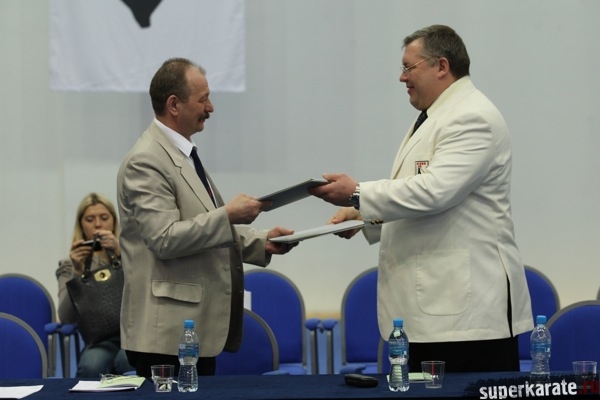 Соглашение подписали Михаил Слипенчук - президент Федерации Кекусин-кан каратэ-до России Михаил и Владимир Холкин - президент Федерации Киокушинкай Будо Каратэ.