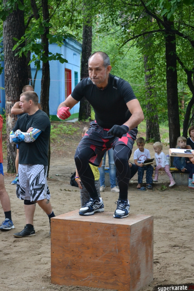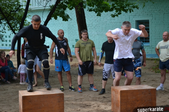 Каждому участнику предстояло пройти нелегкое испытание, состоявшее из семи этапов. В программу функционального комплекса организаторы в этом году включили: запрыгивания на тумбу, толчок гири весом в 16 кг, поднятие корпуса на пресс, рывок 40 килограммовой штанги с приседом и канат. После этих изматывающих упражнений, спортсменам необходимо было преодолеть 800 метровый кросс и сдать тест по тамэшивари (разбивание твердых предметов).