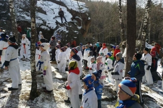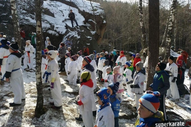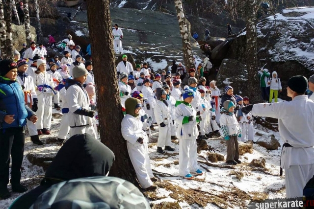 Делегацию каратистов замечали издалека все отдыхающие, разноцветные пояса на белоснежных кимоно ярко контрастировали среди скал покрытых первым снегом.