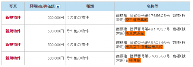 На открытых торгах японских онлайн аукционов появились четыре товарных знака принадлежащих международной организации Кекусин-кан.