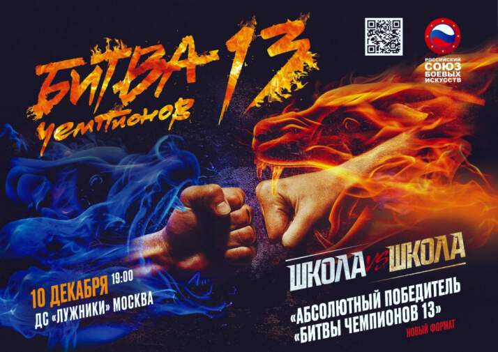 10 декабря 2021 года в Москве в ДС «Лужники» состоится одно из главных событий года в области боевых искусств и спортивных единоборств – Форум боевых искусств «Битва Чемпионов 13: Школа против школы».