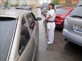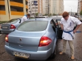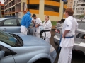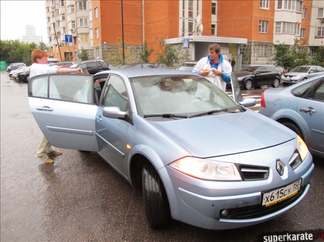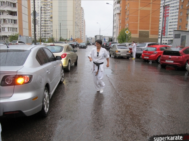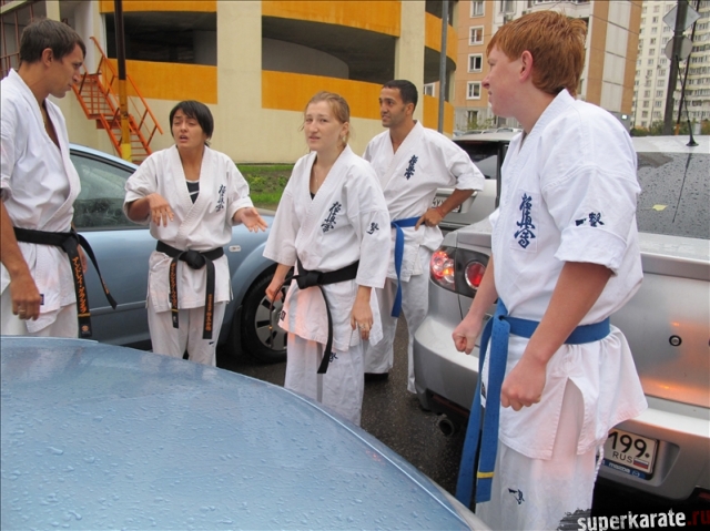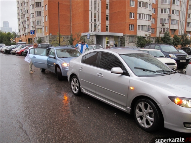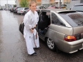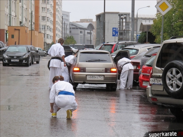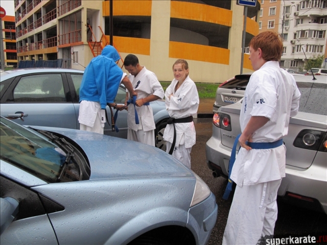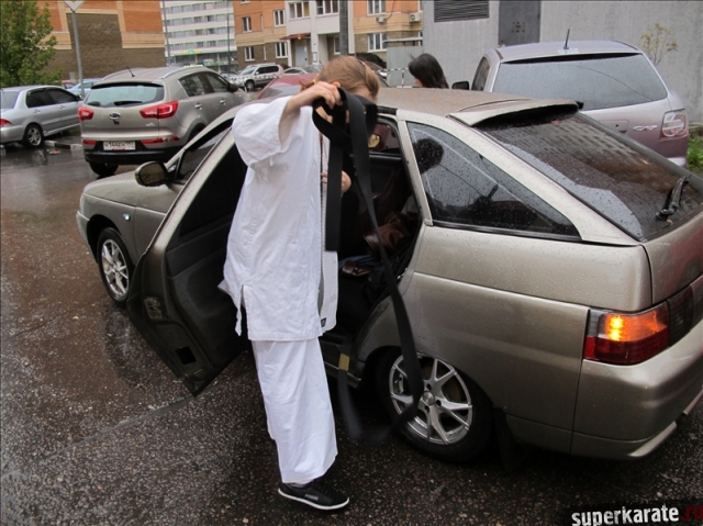 В восемь утра три машины с учениками Максима Дедика подъехали к его дому. Переодевались в кимоно прямо в салонах автомобилей, так как на улице шел дождь.