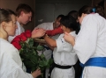 Ученики Макса Дедика достойны своего учителя. Сегодня в 8 часов утра переодетые в кимоно, несмотря на дождь, они под окнами своего сэнсея сделали ему оригинальное поздравление с днем рождения.