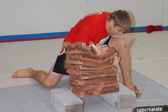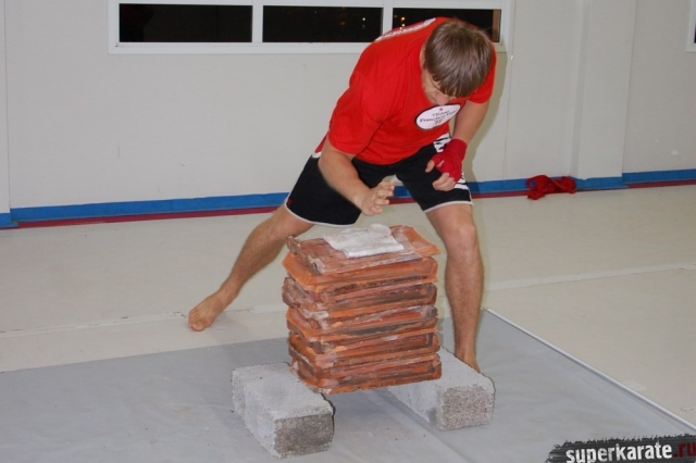 Стопка из 10 черепиц неуверенно покачивалась на бетонных блоках... Шуто... Концентрация... Киай...