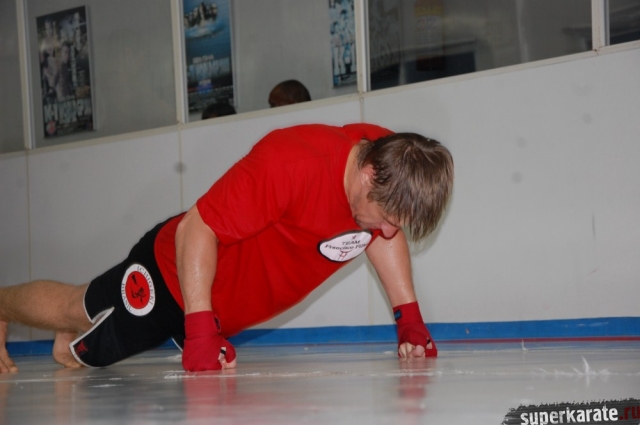 Трое кандидатов остались стоять на месте. А Сэнсэй Михаил, не дожидаясь, пока жребий будет вытянут, пошел разминать руки. Двое из четверых сдававших экзамен никогда в жизни не попробовали бить тамешивари – они занимались только кик-боксингом. Так что, выпади им жребий, все могло бы закончится плачевно. Михаил Медовщиков, перебивший маваши гери джодан весь лед в России, был спокоен и уверен в своих силах. Наверное, поэтому жребий выпал именно ему... По стечению обстоятельств ( в которое лично мне слабо верится), именно его имя оказалось на бумажке.