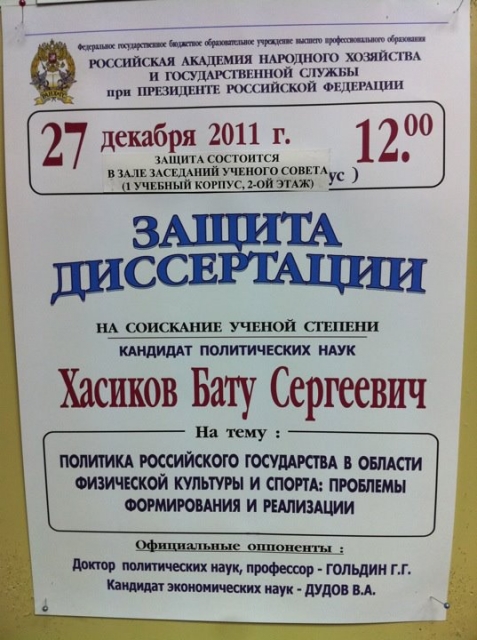 Совсем скоро депутату народного Хурала Республики Калмыкия Бату Хасикову предстоит защита диссертации на соискание ученой степени кандидат политических наук, на тему: "Политика российского государства в области физической культуры и спорта: проблемы формирования и реализации".
