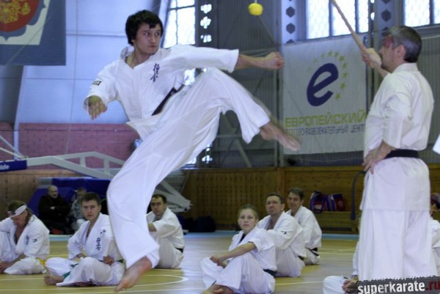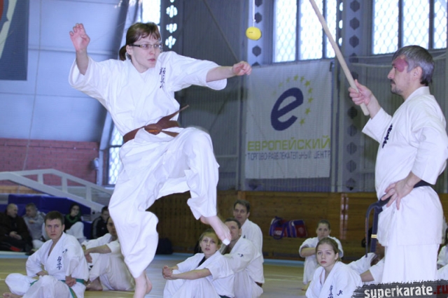 Эта техника входит в небольшой экзаменационный раздел ТЕСТЫ. Всего тестов три - хождение на руках, прыжок через палку и удар в прыжке по мячу. При не прохождении большей части тестов, этот раздел экзамена считается не сданным.